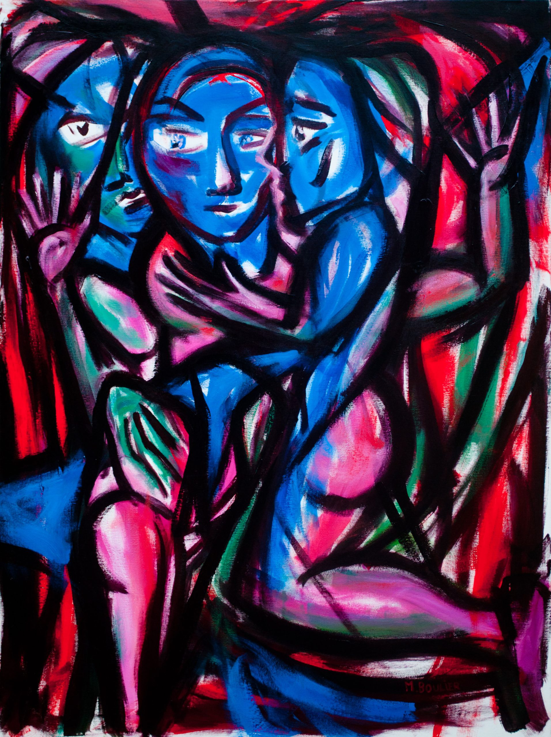 les trois bleues – 130 cm x 97 cm – acrylique sur toile